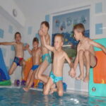 Výlet na Nechranickou přehradu dětem poskytl nečekanou podívanou při rybaření. Všechny si pohladily kapříka a učily nahodit návnadu na dětskám prutu. Koupání v přehradě nám neumožnílo počasí, ale plavání s vodohrátkami si užily v našem bazénu každé dopoledne.