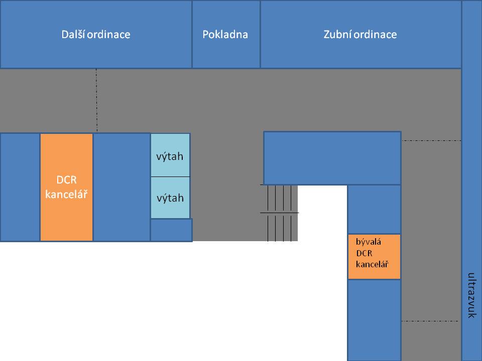 Stále je ve 3. patře, od hlavních výtahů doleva v místech, kde je zubní laboratoř.