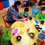 v lese a v tropech. Také jsme se učili pojmenovávat jednotlivé druhy oblečení a povídali si o tom, jak se oblékáme v konkrétním ročním období. Poznávali jsme základní škálu barev a také se učili rozeznávat jednoduché geometrické tvary. Četli jsme si pohádky a děti měly následně za úkol vyprávět příběh, který právě slyšely.