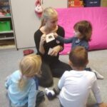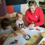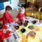 Věnovali jsme se pohybovým aktivitám, při kterých jsme se učili nové říkanky. Kromě říkanek jsme také zpívali písničky a hráli u toho na dřívka. V rámci této činnosti jsme podporovali rozvoj řeči, paměť a také procvičovali rytmizaci. Hodně času jsme strávili ve výtvarné dílně, kde jsme malovali a tvořili. V lesoparku jsme si společnými silami nasbírali přírodní materiály, abychom z nich následně mohli vyrábět v rámci výtvarné činnosti. Děti lepily barevné listy na ježečka ze čtvrtky a v průběhu celého měsíce vznikly i jiné výkresy s podzimní tématikou. Maminky se zúčastnily besedy o Dermacolu v herně mateřského centra a dozvěděly se tak, jak mají správně pečovat o svoji pleť.  V klubíku jsme četli pohádky a prohlíželi si obrázky v knížkách. S rodiči jsme pro děti upekli výborné muffiny, které jsme následně ozdobili a všichni si na nich moc pochutnali. Děti nám pomáhaly se připravovat na zdobení vánočního stromečku na náměstí, které proběhne v listopadu. Společně jsme tak tvořili výrobky, kterými budeme vánoční stromeček zdobit.