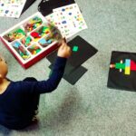 V klubíku jsme poznávali formou hry základní barvy a geometrické tvary. Také jsme procvičovali grafomotoriku. Děti dostaly za úkol dokreslit dárkovou vánoční botu a kapříky na obrázku. Obrázky si po obtáhnutí vytečkovaných čar mohly vybarvit pastelkami. Své výkresy si poté děti mohly odnést domů.