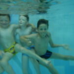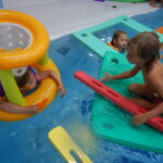 Na tomto táboře byly děti dopoledne rozděleny na tří skupiny, z nichž vždy jedna plavala a druhé dvě skupinky vyráběly různá výtvarná dílka – např. vodnický klobouk, akvárium či lodičky.