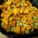 Dýňová polévka byla velmi levná, ale o to více chutná. Stačí Vám jedna menší dýně, dvě brambory, kousek špeku a cibuli a sůl. K dochucení jsme použili provensálské koření a talíř si ozdobili nastrouhaným sýrem.