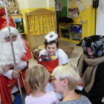 Dnešní dopolední setkání s Mikulášem, čertem a andělem bylo plné úsměvů. Dopolední čekání jsme si zkrátili spolčeným tanečkem a natrénováním básniček, které jsme pak naučili i naše hosty. Mikuláš rozdal všem dětem balíčky a přidal i něco málo ze svého košíku. Těšíme se na příští rok a děkujeme, za krásné dopoledne.