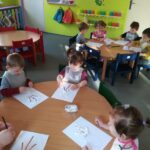 Děti vyráběly srdíčková přáníčka pro maminky k MDŽ. Na oslavu jara jsme lepili a malovali vázičky s větvičkami kočiček.