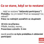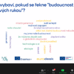 Po obědové pauze se k workshopu připojili hosté. Každý z nich zastával jedno téma z programu Erasmus+. Za ekologii jsme přivítali Ing. Ivanu Mertovou, téma dezinformace patřilo Mgr. Jiřímu Vyčichlovi, Ph.D a participace pak Kateřině Hrubé, vedoucí našeho centra. Účastníci se rozdělili do šesti skupin, přičemž každá skupina pracovala na projektu zlepšení svého okolí a nápady průběžně konzultovala s hosty. Mluvčí z každé skupiny pak projekt představili a následovalo hlasovaní o vítězích.