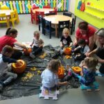 Od září nastupují nové děti, které se seznamují s novým kolektivem. Podzimní slunečné počasí nás lákalo na procházky do okolí. Děti poznávaly přírodniny a skotačily ve spadaném listí. V říjnu jsme poprvé dlabali strašidelné dýně. Byla to pro nás i děti velká zábava. Děkujeme rodičům, kteří se zapojili do jesličkové akce DLABÁNÍ DÝNÍ .