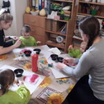 Na dnešní středeční dopolední aktivitě Od písničky po štětec maminky s dětmi vyráběly srdíčka. Malování, míchání barev, lepení, provlékání …. to všechno si děti vyzkoušely a byla z toho moc krásná srdíčka.