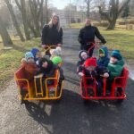 V lednových a únorových dnech jsme si často povídaly o paní Zimě a jejich kouzlech. Stavěli jsme sněhuláky, koulovali se a užívali sněhu. Vyprávěli jsme si o zvířátkách co dělají v zimě, krmili a pozorovali ptáčky u našeho krmítka. Když bylo sychravé počasí zpívali jsme, tancovali a malovali ve třídě.