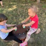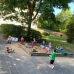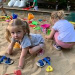 V teplých červencových dnech jsme trávili většinu času na zahradě v příjemném stínu stromů. Děti jezdily na motorkách, klouzaly se na skluzavce a stavěly hrady a tunely z písku ( paní uklízečky z nás měly obrovskou radost 🙂 ).