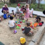 V červenci jsme si užívali převážně hrátky na naší zahradě. Proháněli jsme se na motorkách a stavěli hrady z písku. Ovšem srpen byl pro smutným měsícem, protože se musíme rozloučit s dětičkami, které od nás postupují dál do mateřských školek. Uvolnilo se tak spoustu volných míst pro nové malé kamarády a my je už netrpělivě vyhlížíme.