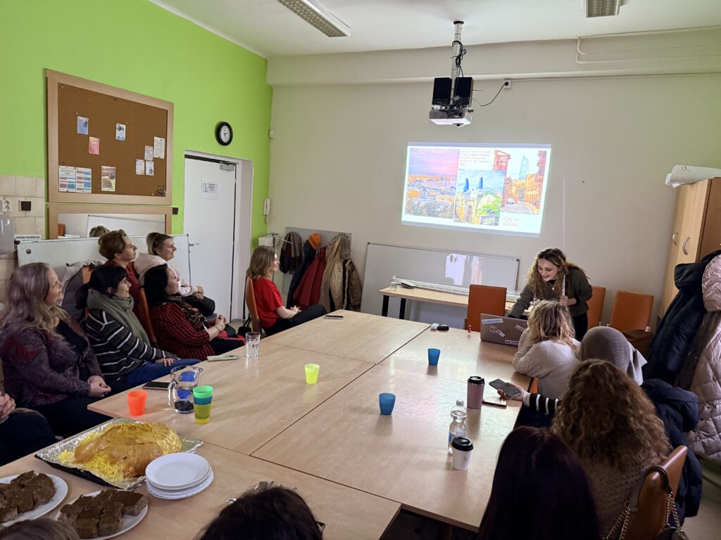 Tento týden si naše dobrovolnice Sara pro vás připravila tradiční Café Lingua o své zemi – Ázerbajdžán. Sara nám nastínila klasický život v zemi ,,Ohně”. Do prezentace přidala osobní fotografie například z přírody nebo z oslav různých svátků, díky kterým účastníci měli možnost nahlédnout o něco blíž do jejího života. Návštěvníci se dozvěděli spoustu nových informací o historii Ázerbajdžánu, o tradicích a tradičním oblečení. Ukázala nám nádherné přírodní útvary což doplnila doporučením k výletu do její země.