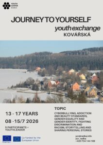 Projekt Journey to Yourself je mezinárodní výměna mládeže v rámci programu Erasmus+, zaměřená na osobní rozvoj, sebereflexi a duševní pohodu. Čeká tě bezpečný prostor pro sdílení, kreativitu, nové přátele z různých zemí a inspirativní zážitky, které ti pomohou lépe poznat sebe i ostatní.
